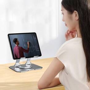 Otimize seu trabalho e entretenimento com nosso suporte para tablet ajustável. Desfrute de um bom ângulo de visão para assistir filmes, séries... Experimente a liberdade com o suporte dobrável. Dobre e guarde com facilidade na sua bolsa e desfrute de ângulos ajustáveis a qualquer hora e em qualquer lugar. Este suporte portátil é perfeito para trabalho e entretenimento em qualquer lugar.