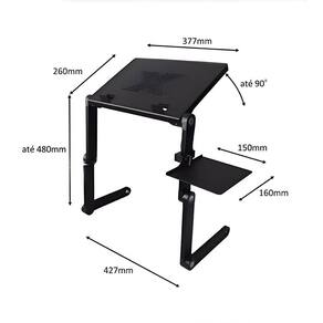 Tenha o máximo de conforto e ergonomia com o nosso Suporte de Mesa Portátil Dobrável para Notebook. Este suporte foi desenvolvido especialmente para tornar o uso do seu notebook mais confortável e saudável, evitando dores e desconfortos durante o trabalho ou estudos.Este suporte é ideal para quem trabalha com notebook por longas horas, seja em casa, no escritório ou de forma remota. Indicado para estudantes, profissionais de TI, designers, e qualquer pessoa que valorize conforto e ergonomia durante o uso do computador.Especificações Técnicas:- Modelo: Suporte Retrátil Para Notebookcom 2 coolers + apoio para o mouse- Material: Polipropileno e Componentes Elétricos.- Alimentação de Energia: Via Cabo USB.-Dimensões (Aberto):11 cm (Largura) 53 cm (Altura) 68 cm (Profundidade).- Dimensões (Dobrado):11 cm (Largura) x 4 cm (Altura) 52 cm (Profundidade).-Peso Suportado: Até 15kg.- Cor Disponível: Preto- Reduz o cansaço e promove uma postura correta.-Além de funcional, traz elegância ao ambiente de trabalho.- Ideal para uso em casa, no escritório ou em viagens.- Perfeito para uso em casa, no escritório ou durante viagens.- Dimensões Aprox.: 10cm (Comprimento) X 11cm (Largura) X 10cm (Altura)- Compatível com notebooks de até 17 polegadas.Itens Inclusos na Embalagem:- 01x Suporte Retrátil Para Notebook.Compre agora e melhore sua experiência de uso com o nosso Suporte Mesa Portátil Dobrável Para Notebook Regulável!