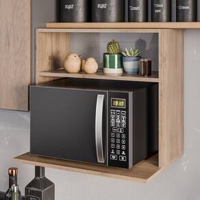 Projetado para receber tanto micro-ondas como forno elétrico, esse nicho aéreo é sinônimo de mais praticidade para o seu dia a dia. Isso porque você poderá instalá-lo próximo à pia ou fogão, de modo que o acesso seja rápido e fácil. Ah, e por ser um armário suspenso, a é garantida, já que não ficará ao alcance das crianças. Para completar a lista de atributos, o nicho superior serve para você dispor itens decorativos de cozinha ou até mesmo para organizar os seus potes de temperos. Demais não é mesmo?