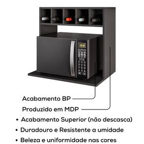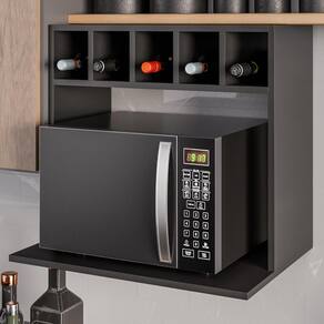 Suporte Nicho Lisa, o aliado que você precisa para uma cozinha mais funcional e organizada! Estrutura em MDP 15 mm com acabamento BP (durável, resistente à umidade e não descasca). Desenvolvido para acomodar eletrodomésticos como microondas ou forno com segurança, é composto por 1 prateleira (suportando até 18kg) e nicho adega com repartições para até 5 garrafas, trazendo mais praticidade ao dia a dia. Produto será entregue em 01 volume.