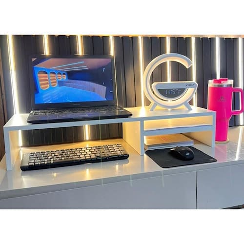 Nosso suporte de monitor gamer branco é a escolha perfeita para quem busca uma combinação de elegância, resistência e funcionalidade. Com medidas de 90x20x15 cm, ele oferece uma base sólida e espaçosa para seu monitor, garantindo estabilidade durante suas partidas mais intensas.