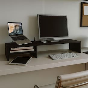 Feito 100% de MDF de alta qualidade, esse suporte traz um acabamento pretos que combinam com qualquer setup gamer ou escritório moderno. Além de deixar seu espaço mais organizado, ele ajuda a melhorar sua postura e a otimizar o espaço na sua mesa. Marca: Não Informado