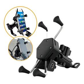 Suporte para celular com carregador USB integrado, fixação universal para motos, compatível com dispositivos de 3 a 7 polegadas. Voltagem de entrada 12V-24V, saída 5V/2.1A.Vendido e entregue por Olist