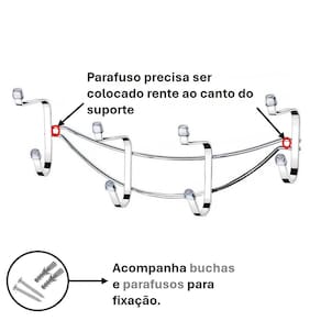 Suporte Multiuso Cabideiro de Parede 8 Ganchos Cromado