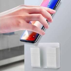 Suporte apoio para celular universal de parede com adesivo Suporte para celular de plástico Não precisa furar a parede basta colar muito fácil. É um ótimo apoio para colocar o seu celular quando for carregá-lo. Para utilizá-lo é só retirar a película e colar no local de sua preferência. O adesivo é bastante resistente e de longa duração. Não deixe mais o seu celular debaixo do travesseiro enquanto ele carrega Ele pode esquentar e te machucar