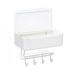 Organize seus pertences com praticidade e estilo usando o Organizador Multiuso Arthi Compartimentos inteligentes para lenços umedecidos, carteira, relógio e muito mais, além de 4 ganchos estrategicamente posicionados para pendurar chaves, vassouras e o que mais precisar.