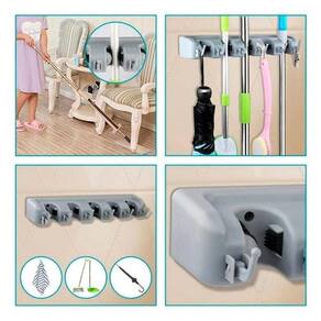 Suporte Multiuso 6 Posições Porta Vassoura e Rodo