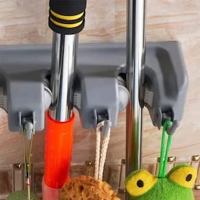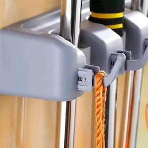 Com seus 3 suportes você consegue organizar : Vassouras, Rodos, Pás, etc... Com seus 4 ganchos você consegue organizar: Panos, Toalhas, Vassouras, etc...