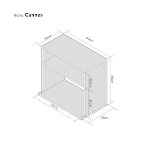 * Informações Técnicas: - Medidas totais: 55cm de altura x 60cm de largura x 35cm de profundidade. - Medida interna nicho maior: 32cm de altura x 57cm de largura x 35cm de profundidade. - Medida interna nicho menor: 18,5cm de altura x 57cm de largura x 30cm de profundidade. - Não possui fundo para facilitar o acesso a tomada.