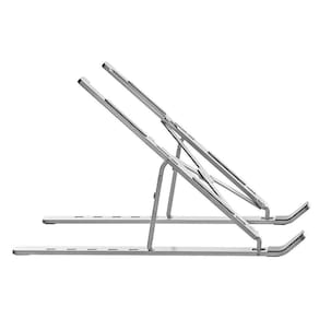 Feito com o mais fino alumínio, este suporte é leve e elegante, combinando perfeitamente com um laptop moderno. Com um design inovador que se dobra totalmente, você pode guardar facilmente em qualquer mochila ou simplesmente guardar em um cantinho quando não estiver em uso. Não se preocupe com arranhões, o suporte conta com almofadas de silicone não tóxicas que protegem seu dispositivo e garantem uma fixação firme.