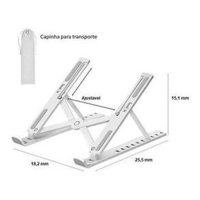 Especificações: - Dobrável e ajustável. - 6 ângulos de inclinação disponíveis. - Material: Liga de alumínio. - Material antiderrapante em toda a superfície.