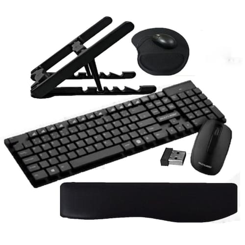 Marca: Masticmol Linha: ST35.031 Suporte ergonômico e ajustável para notebook. Produzido em polipropileno. Ajuste de altura/inclinação em três níveis, 15°, 30° e 45° Universal. Para qualquer modelo de notebook Permite a refrigeração do seu notebook já que a máquina não fica em contato direto com a superfície de trabalho. Melhora o ângulo de visão favorecendo a postura correta Permite conexões frontais como fone de ouvido e USB Cor: Preto Teclado e Mouse Sem Fio 2.4 GHZ Teclas Flutuantes USB Preto - TC251 - Multilaser