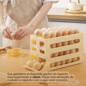 Economize espaço armazenando ovos: com prateleiras para ovos empilháveis, você pode otimizar o uso da porta lateral da geladeira e evitar que os ovos sejam esmagados. Grande capacidade de armazenamento: empilhe até 30 ovos, com porta-ovos duráveis que protegem cada ovo. Design tipo gaveta, empilhável para um armazenamento limpo e bonito, ajudando a manter a geladeira organizada e prática. Fácil de limpar: para limpar, basta lavar a bandeja com água morna e secar com papel toalha. Tamanho ideal: projetado especificamente para o armazenamento de ovos, cabe em pequenos espaços da maioria das casas. O design fino e compacto se adapta a qualquer geladeira, prateleira ou bancada, facilitando a economia de espaço. Multifuncional e multiuso: a caixa de armazenamento de ovos é adequada para armazenar outros alimentos. Também pode ser utilizada em quartos. Ecológica e moderna: feita de material pp de qualidade alimentar, são requintadas, bonitas e antiderrapantes. Ampla gama de usos: pode ser em cozinhas, geladeiras, prateleiras de utensílios, congeladores, armários, quartos, banheiros, escritórios, depósitos, garagens, entre outros. Ideal para apartamentos de acampamento, dormitórios universitários e trailers. Especificação: Material: plástico Tamanho: 30x36x20x7cm/11,81 x 14,17 x 7,7 Contém: caixa de armazenamento.