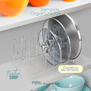 Ideal para organizar tampas de panelas, frigideiras, travessas e bandejas dentro do seu armário, ampliando a área útil. Além disso são feitos de aço cromado, agregando charme, beleza, qualidade e resistência.