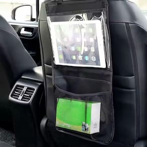 Mantenha seus filhos entretenidos e organizados durante viagens com este suporte organizador para encosto de banco. Ideal para carros de passeio, SUVs e utilitários, ele possui compartimentos espaçosos para guardar livros, lanches, brinquedos e acessórios, além de um bolso transparente para tablet, permitindo que as crianças assistam a vídeos com conforto e .