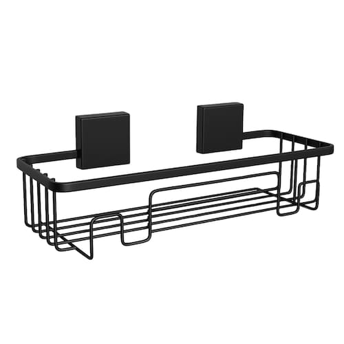 - Material: aço carbono com revestimento preto fosco, resistente à corrosão e ao desgaste - Sistema adesivo 3M que proporciona fixação firme em superfícies lisas como azulejo, vidro e madeira - Suporta até 1,8 kg, perfeito para frascos de shampoo e condicionador - Garantia de 1 ano contra defeitos de fabricação - Código: 0576 - Marca: Schmitt Aramados - Medidas: 10 x 11 x 31cm (Altura x Profundidade x Largura)