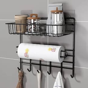 Suporte Organizador Parede Cozinha Metal Prateleira Porta Papel Toalha Duplo Ganchos Multiuso Armazenamento Temperos Ace