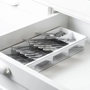 O organizador de talheres foi pensado para permitir diversas composições e proporcionar máximo aproveitamento de espaço nas gavetas, por isso, traz 5 opções de organização e ícones indicando a setorização dos talheres. Combine, encaixe e enxergue facilmente o conteúdo, mantendo tudo em ordem.