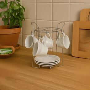 Capacidade: 6 ganchos para xícaras e base para 6 ou mais pires