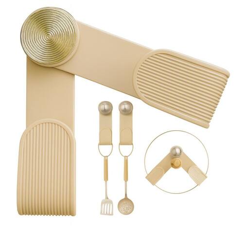 Suporte Organizador Tampa De Panela Cabide Duplo Toalha Gancho Cozinha Banheiro Multiuso Cor: Bege Suporte Organizador Tampa De Panela Cabide Duplo Toalha Gancho Cozinha Banheiro Multiuso