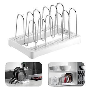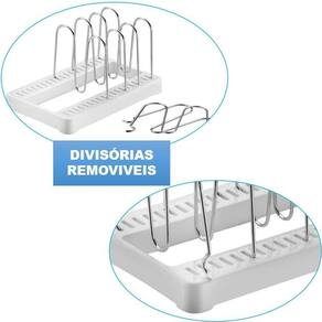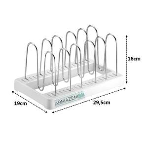 Prático, o organizador de tampas de panela faz com que o armário fique organizado e funcional. Tudo em seu devido lugar