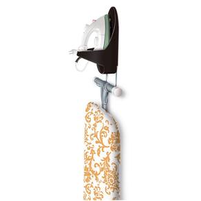Ideal para lavanderia. Suporte de ferro com gancho para penduras a tábua de passar com segurança e praticidade. Suporta até 6 kg. Aguenta altas temperaturas Características do Produto Capacidade: 6 kg Cor da estrutura: Preto Contém: 01 unidade de suporte para ferro Composição do Produto Estrutura do produto:ABS PRETO, Arame, Silicone Dimensões do Produto (valores aproximados) Medidas do produto aberto: 0,32 x 0,17 x 0,22 Foto meramente ilustrativa, não acompanha ferro de passar roupa, e nem a tábua. Marca: Secalux Ean: 7896205292363