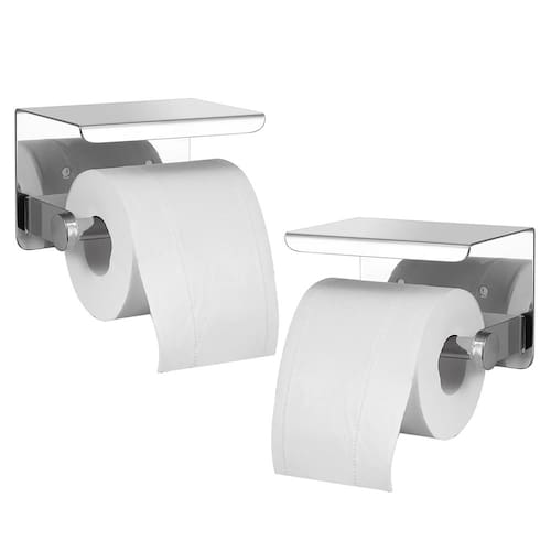 O suporte do rolo higiênico, a parte superior do suporte do rolo higiênico pode apoiar seu celular, tablet, relógio, lenços umedecidos, óculos e outros pequenos objetos quando você estiver no banheiro, muito prático e conveniente.