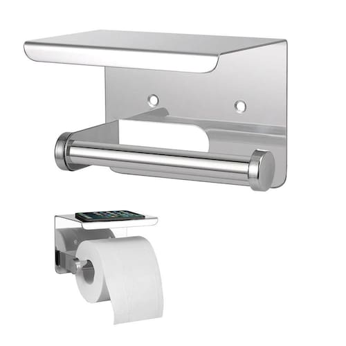 O suporte do rolo higiênico, a parte superior do suporte do rolo higiênico pode apoiar seu celular, tablet, relógio, lenços umedecidos, óculos e outros pequenos objetos quando você estiver no banheiro, muito prático e conveniente.