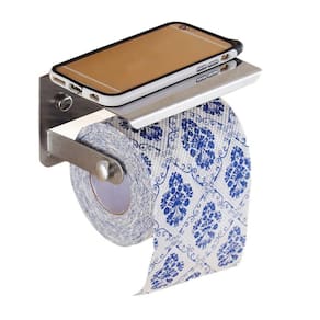 O suporte do rolo higiênico, a parte superior do suporte do rolo higiênico pode apoiar seu celular, tablet, relógio, lenços umedecidos, óculos e outros pequenos objetos quando você estiver no banheiro, muito prático e conveniente.