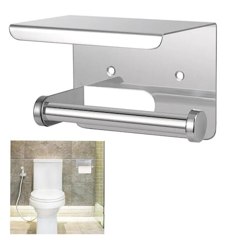 O suporte do rolo higiênico, a parte superior do suporte do rolo higiênico pode apoiar seu celular, tablet, relógio, lenços umedecidos, óculos e outros pequenos objetos quando você estiver no banheiro, muito prático e conveniente.