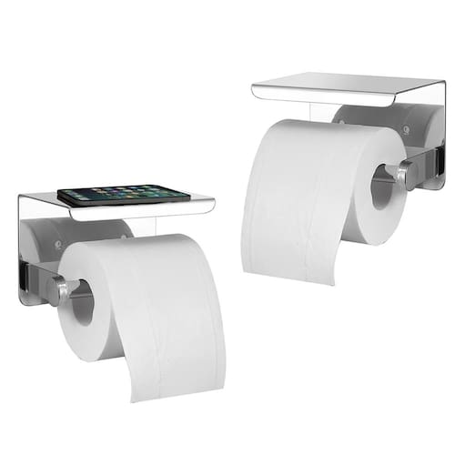 O suporte do rolo higiênico, a parte superior do suporte do rolo higiênico pode apoiar seu celular, tablet, relógio, lenços umedecidos, óculos e outros pequenos objetos quando você estiver no banheiro, muito prático e conveniente.