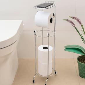 Fabricado em arame de aço cromado com ponteiras em ABS cromado, o suporte comporta até 3 rolos de papel reserva e 1 rolo em uso, mantendo tudo sempre à mão de forma funcional e discreta.