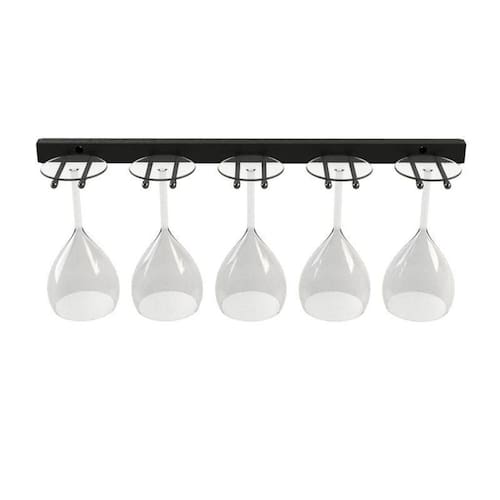 Nosso porta taças permite a armazenagem de taças com bojo de até 12cm de diâmetro. São fabricados em aço e possuem acabamento com pintura eletrostática na cor preta. Ponteiras em vinil e materiais de engenharia. O charme que faltava para a sua adega. Parafusos e buchas para fixação acompanham o produto. Ean: 7892051410289