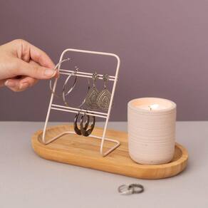 Esse é o suporte para acessórios vertical de ferro 14cm - Oikos.Mais organização: ótimo para armazenar e organizar brincos, pulseiras e outros acessórios. Ideal para manter todos os seus acessórios em um só lugar. com os itens sempre à vista, fica mais fácil encontrar aquele brinco na hora de se arrumar ;) Design minimalista: além de funcional, é decorativo. a combinação do seu design, material e tom neutro transforma os ambientes, deixando tudo cheio de bossa.Barras para brincos: as barras finas servem para pendurar os mais diversos brincos. ótimo para encaixar brincos com fecho de tarraxa. é só passar o brinco pelas barras e encaixar a tarraxa para que ele fique bem preso e organizado. Versátil: pode ser colocado na bancada do banheiro, no quarto, no closet e onde mais você quiser. você que manda! Material resistente: todo feito em ferro, ele garante firmeza e estabilidade na hora de pendurar os seus acessórios.Dimensões do produro:Altura: 26CmLargura: 15CmComprimento: 30Cm