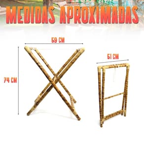 CARACTERÍSTICAS: - Material: bambu e cipó sintético - Material ecológico e sustentável - Ideal para servir de apoio a bandejas para servir ou decorar - Suporte dobrável: pode ser guardado em qualquer lugar - Peso suportado aproximadamente: 14Kg