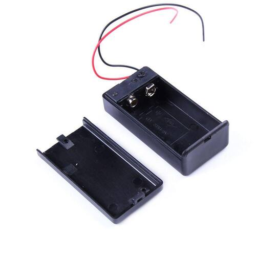 Este Suporte para Bateria 9V possui chave Liga/Desliga e fios preto e vermelho para facilitar as conexões.