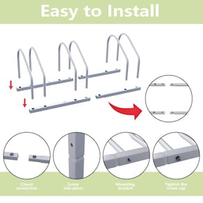 - Fácil de usar: os suportes de bicicleta estão todos conectados, com instruções que você pode concluir a instalação de forma rápida e fácil. Basta enrolar a bicicleta no rack e ir embora.