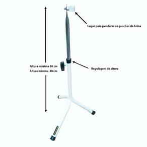Suporte Para Bolsa Coletora Até 2L Aço Altura Regulável O suporte para bolsa coletora de urina pode ser em casa, clínicas e hospitais. O suporte pode ser em qualquer bolsa externa como por exemplo de drenagem pós-cirúrgica. Para um bom uso importante manter a bolsa abaixo do nível do corpo. O tripé para bolsa de urina é confeccionado em aço carbono com pintura eletrostática que garante a durabilidade. Tem altura ajustável mínima de 40 cm e máxima de 50 cm. Suporta bolsa de até 2000 ml. Ficha técnica: Produto: suporte para bolsa coletora Fabricante: Vagalumy Indicações: clínicas, hospitais e residência. Para bolsa de urina, drenagem etc Composição: aço carbono Tamanho da peça: 40 cm altura mínima; 50 cm altura máxima Peso: 580 g Medidas do pacote: 43 x 30 x 30 cm Cor: branca Embalagem com 1 suporte para bolsa coletora. A bolsa coletora não vai inclusa com o item. fornecida pelo fabricante de 6 meses Marca: Não Informado