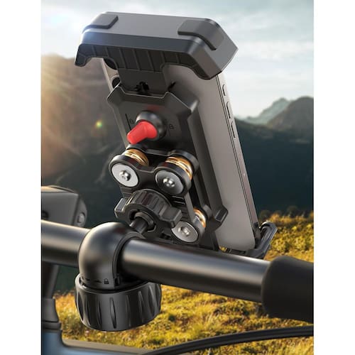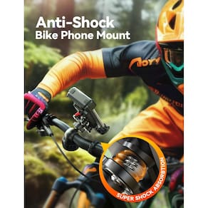 - [Silicone de absorção de choque] Os 4 cantos e o painel do suporte de celular para bicicleta são cobertos com silicone macio para segurar o telefone com mais firmeza, evitar arranhões nas bordas e lentes do telefone e fornecer proteção adicional contra impactos. As bordas de silicone para motocicletas evitam rachaduras e amassados na tela do telefone, mantendo seu telefone seguro mesmo nos passeios mais acidentados.