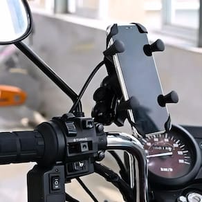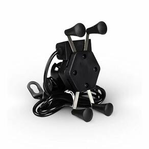 Estrutura em plástico ABS de alta resistência. Fixação prática e ajustável no guidão. Sistema de trava que impede o celular de se soltar durante o trajeto. Almofadas internas emborrachadas que protegem contra riscos e arranhões. Rotação 360 com articulação esférica, permitindo uso na vertical ou horizontal.
