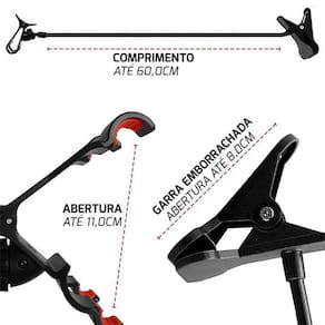 Caracteristicas: Material: Emborrachado, Abs, Metal, plástico Medida: Haste 63cm Grampo: Suporta até 12cm Validade: Inderminada Cor: Preto Ean: 3435091051605