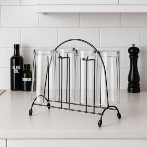 Fabricado em arame de aço com pintura epóxi preto brilhante e ponteiras em PVC, o suporte Utimil combina resistência e design sofisticado. Ideal para manter seus copos organizados e sempre à mão, garantindo higiene e charme na sua cozinha ou área de lazer.