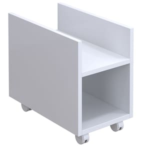 Características: Estrutura 100% em MDP 15mm. Fitas com borda de papel. Revestimento melamínico 100% em BP, que garante maior resistência ao produto. 04 rodízios de PVC para fácil locomoção. Suporta até 15Kg. Prateleira com largura de 19cm. Produto na Cor Branco, com acabamento Fosco.