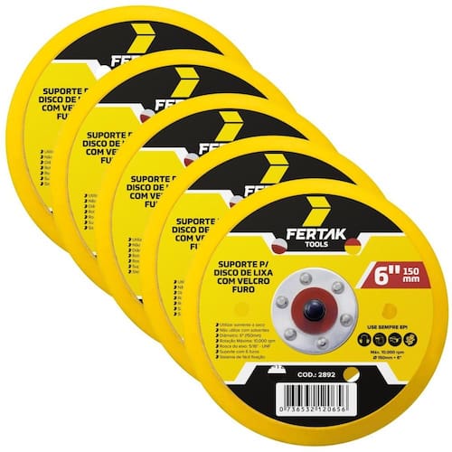Fabricado com materiais resistentes e de alta qualidade, o suporte oferece durabilidade superior e excelente absorção de impactos. Seu design com 6 furos melhora a extração de poeira, reduzindo o acúmulo de resíduos e aumentando a vida útil tanto do suporte quanto do disco de lixa.