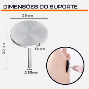 Suporte para Disco de Lixa Adesivo 25mm x 1,8mm Haste 2,35mm Profissional Dremax - Marca: Dremax - Referência: MD035 - Haste: 2,35mm - Diâmetro: 25mm - Espessura: 1,8mm grosso - Para uso com discos de lixa e esponjas adesivas não inclusas - Fabricado em aço inox - Resistente ao desgaste e durável - Indicado para todas as marcas de micro retíficas e mini lixadeiras com mandril ou pinça de 2.4mm como Dremel, Charbs, Einhell, Black+Decker, Dremax, Mondial, Vonder, Titanium, Western, Ingco, Gamma, Wesco, etc. - Garantia: 90 dias contra defeitos de fabricação A DREMAX é a primeira e única marca brasileira dedicada exclusivamente às micro retíficas, acessórios e acoplamentos para esta indispensável ferramenta. Seja para trabalhos de precisão, artesanato, modelagem ou reparos, a DREMAX tem o produto certo para você. Marca: Dremax