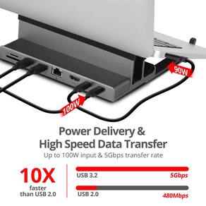 O CE-MTDK21-S1 é um suporte multifuncional para laptop e estação de ancoragem que oferece visuais de exibição 4K e várias conexões periféricas ao usar seu laptop, além de manter seu desktop bem organizado e eficiente em termos de espaço.