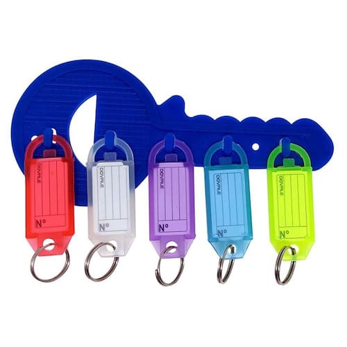 Suporte para Etiquetas Azul ou Amarelo (de acordo disponibilidade) modelo 11 c/ 5 ganchos e 5 etiquetas sortidas