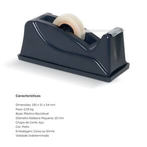 O suporte para fita adesiva da cavia é versátil, resistente e durável. Sua chapa de corte é de aço e ela possui uma roldana para fitas pequenas 25mm, fazendo dela um ótimo item para se ter em escritórios e mesas.
