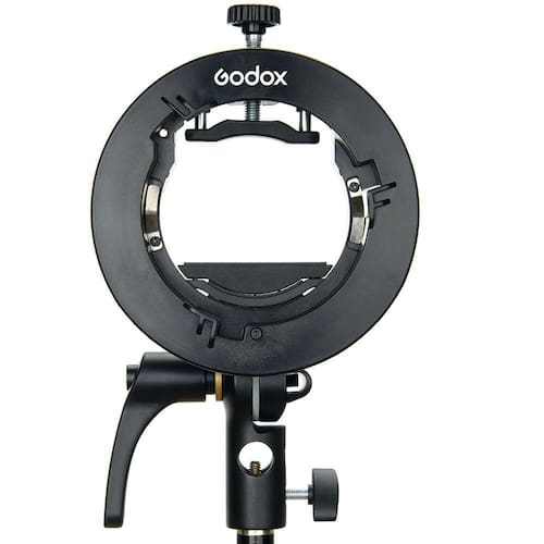 O Suporte Godox S2 é um acessório para fotografia em estúdio que permite encaixar um flash dedicado em um tripé de iluminação e então acoplar um softbox com sistema bowens. Ideal para iluminação remota com radioflash.