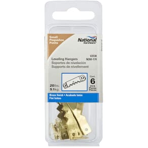 National Hardware Ganchos de nivelamento N260-174, design de dente de serra, uso interno, acabamento de latão de 3,5 cm (pacote com 1)